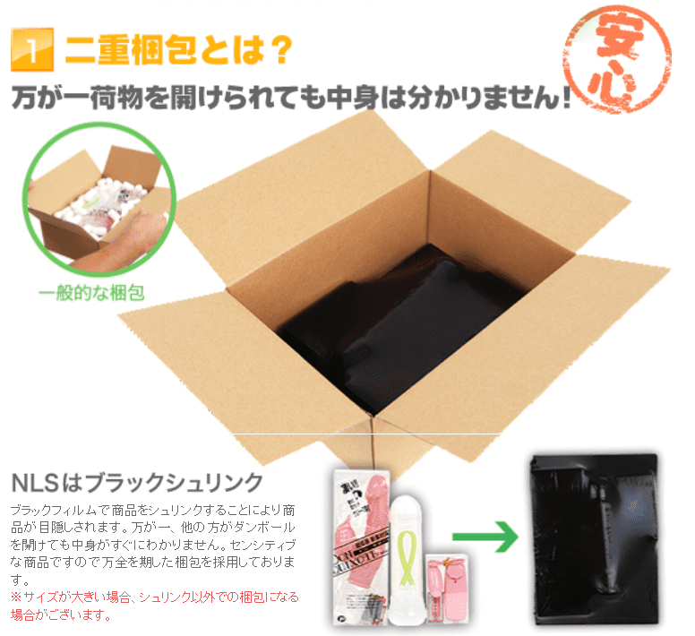 そして、大人のおもちゃ(おとなのおもちゃ)のネット通販として非常に大切なことが、購入が絶対にバレないこと。NLSは扱っている商品が全てアダルト系の商品の為、アマゾンや楽天では実現不可能な、きめ細やかな梱包・配送に定評があります。
