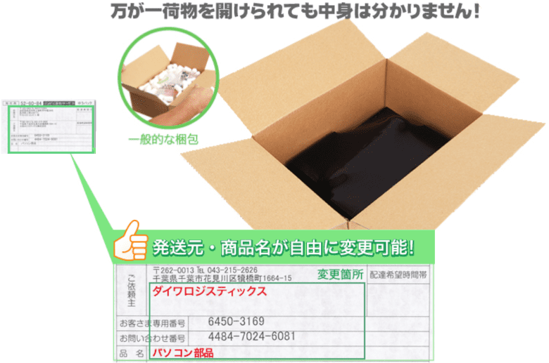 大人のおもちゃの通販を利用する上で心配なのが「配送伝票」に商品名が書かれること。「品名:バイブレーター」なんて書かれていたら最悪。しかしNLSでは「パソコン部品」「家電製品」などの品名で配送してくれるので、そんな心配は無用です。