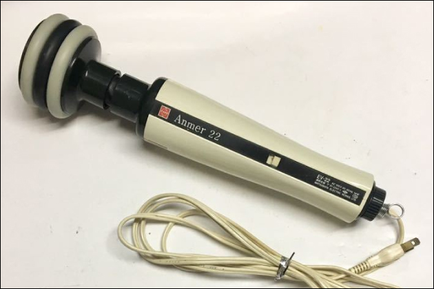 昔の電マと聞いて、おそらく最初に思いつくのは「白とグレー」のモデル。しかし電マは元々が健康器具のため、昭和の時代から存在していました。構造的には家庭用電源を使用し、振動ヘッドがあるので、近代の電マの始祖といってもいいでしょう。
