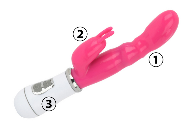 二股のバイブレーターには「クリバイブ」と呼ばれる個別のモーターを備えた突起があります。このクリバイブを「クリトリス」に当てる事で強い刺激を与えることが出来ます。